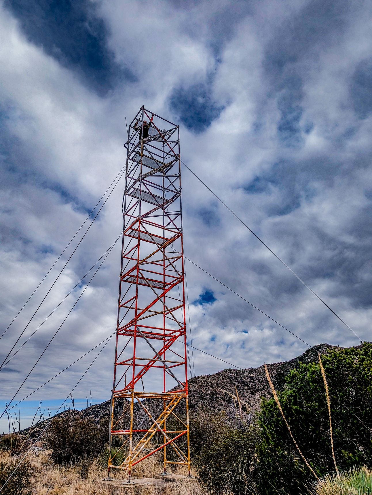 Also, about halfway up the trail, Kelly had spied this tower just to the left of our destination. She told me that if there was a path, and no “no trespassing” signs she was going to climb it. I knew better than to object. And climb it she did …