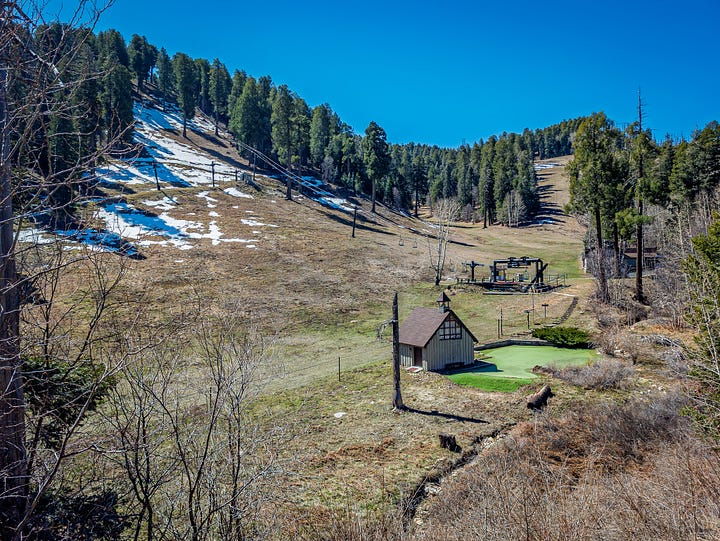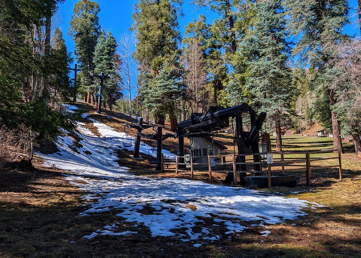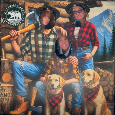 Kelly and the teens had spring break this past week, so of course we had to do something. At first there was a little uncertainty about everyone’s schedules, then gas prices spiked, so we decided to stay relatively close (103 miles) to home, and she just rented a cabin in Summerhaven, on Mount Lemon. It’s the off season in this mountain town so other than an hour or so of afternoon bustle, we basically had it all to ourselves.