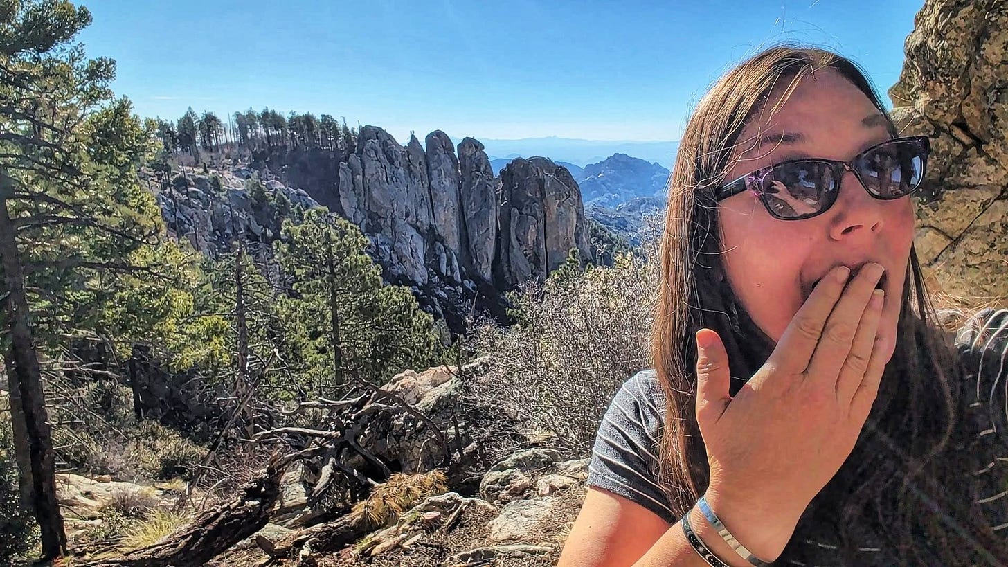 Hike 2 was a bit more robust. Seth was able to join us and We completed the Incinerator Ridge section of the Arizona Trail! This jaunt offered rock scrambles, and expansive views from the ridgeline with a full 360 from Leopold Point. All along the way there were spaces to walk right along the edge of the world~