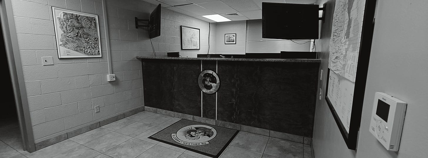 Actually, my forecasters are usually sitting down low enough that you can see them from this angle. But I promise you, they’re on the other side of the counter putting together a forecast.