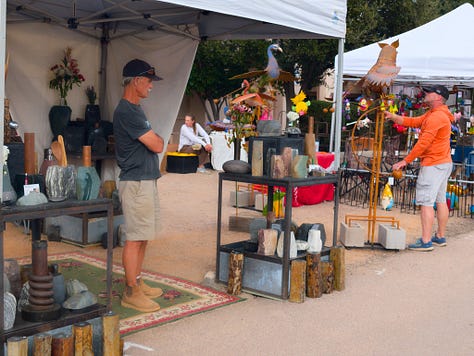 Our primary destination on Saturday was an art festival in Tubac, which is just north of Nogales and Rio Rico. It was a neat little town, and I think it would be interesting to visit just on a normal day. For the festival, we had to deal with a little bit of traffic, then pay $10 for parking. But it wasn’t bad. We walked around people watching and stopping in at some of the booths.