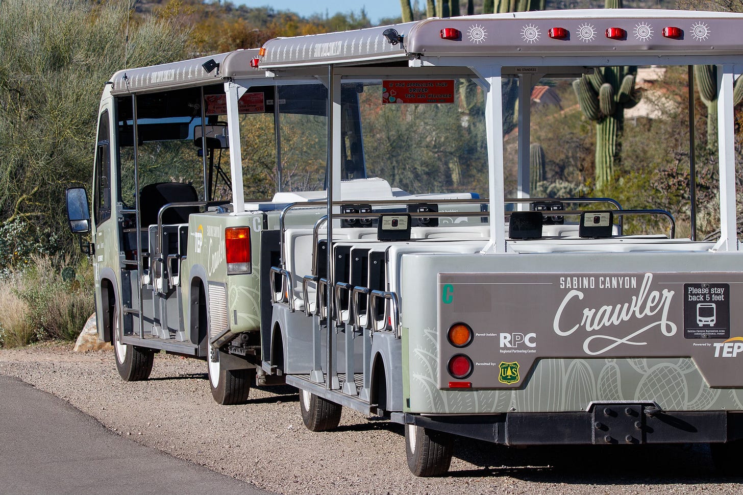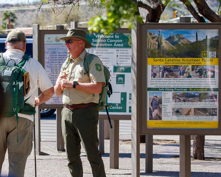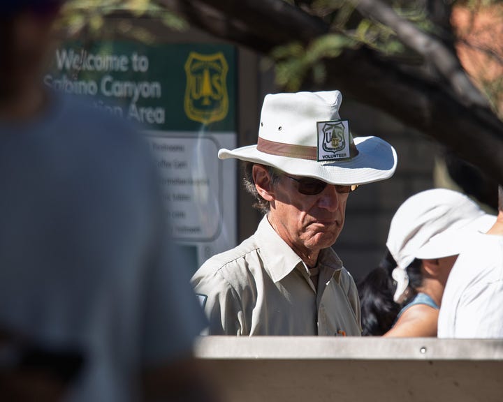 Sabino Canyon is run by the National Park Service, so there is an $8 daily use fee. Fortunately, I have an America the Beautiful pass, so it was free for us.