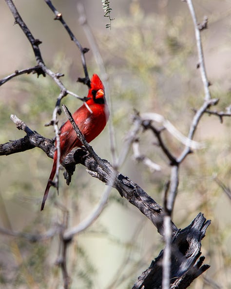 There was an abundance of wildlife. I saw several different species of birds, including a male and female Phainopepla, a Cardinal, a Red-tailed Hawk, a Black-throated Sparrow, and a Curved-billed Thrasher.