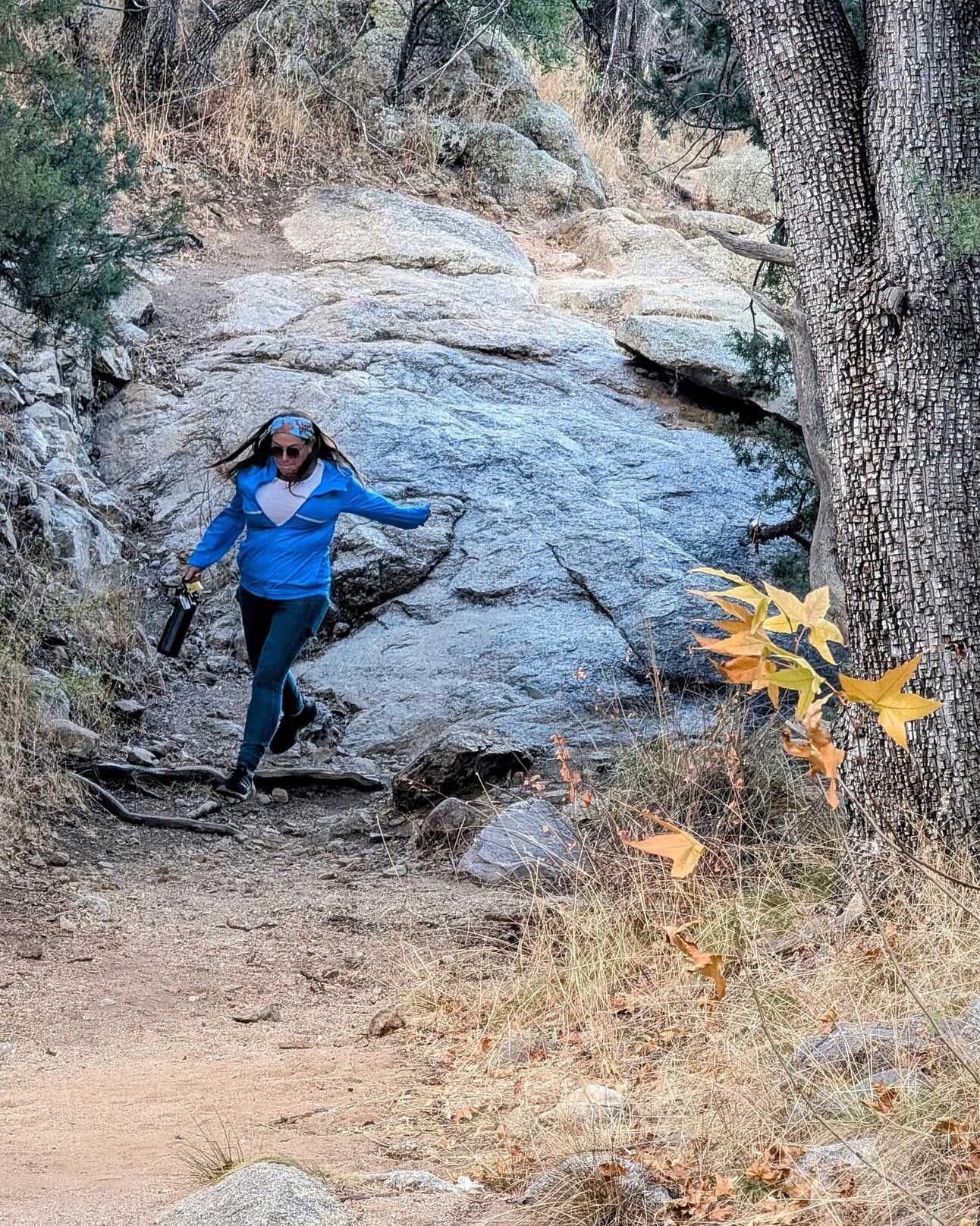 We ended up hiking about 2 1/2 miles up the trail (like I said, we’ve been here quite a few times before). None-the-less, Kelly was a little resistant when I suggested that we turn around about an hour before sunset, as unbeknownst to me we were “almost to the slot canyon”. She ended up going ahead for about 20 minutes while I stopped to catch my breath. She herself stopped just short of the slot canyon. But it was enough to remind us that a Brown Canyon to Hamburg Trail to Ramsey Canyon 13+ mile loop hike needs to be added to our 52 hikes in 2025 list.