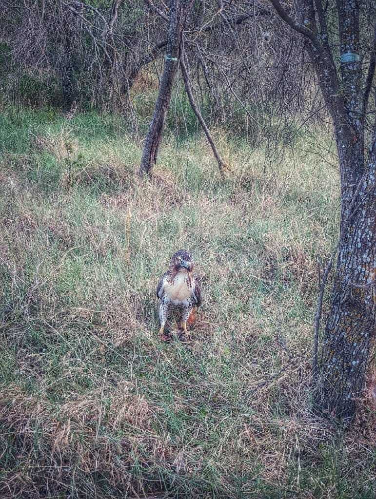 There is little city park called Anton Schumann Park about 15 minutes from the Airbnb I'm staying in tonight, so I took a walk over there. Little did I know I would get to take pictures (with my Pixel 6 phone) of a hawk from only about 2 feet away as it ate a squirrel.