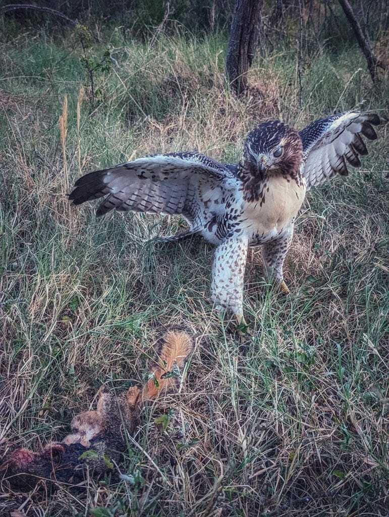 I did take a short video of the hawk actually eating the squirrel (warning, graphic). But I can't figure out how to embed it here, so you'll have to go over to Instagram to view it. Click on the picture below.