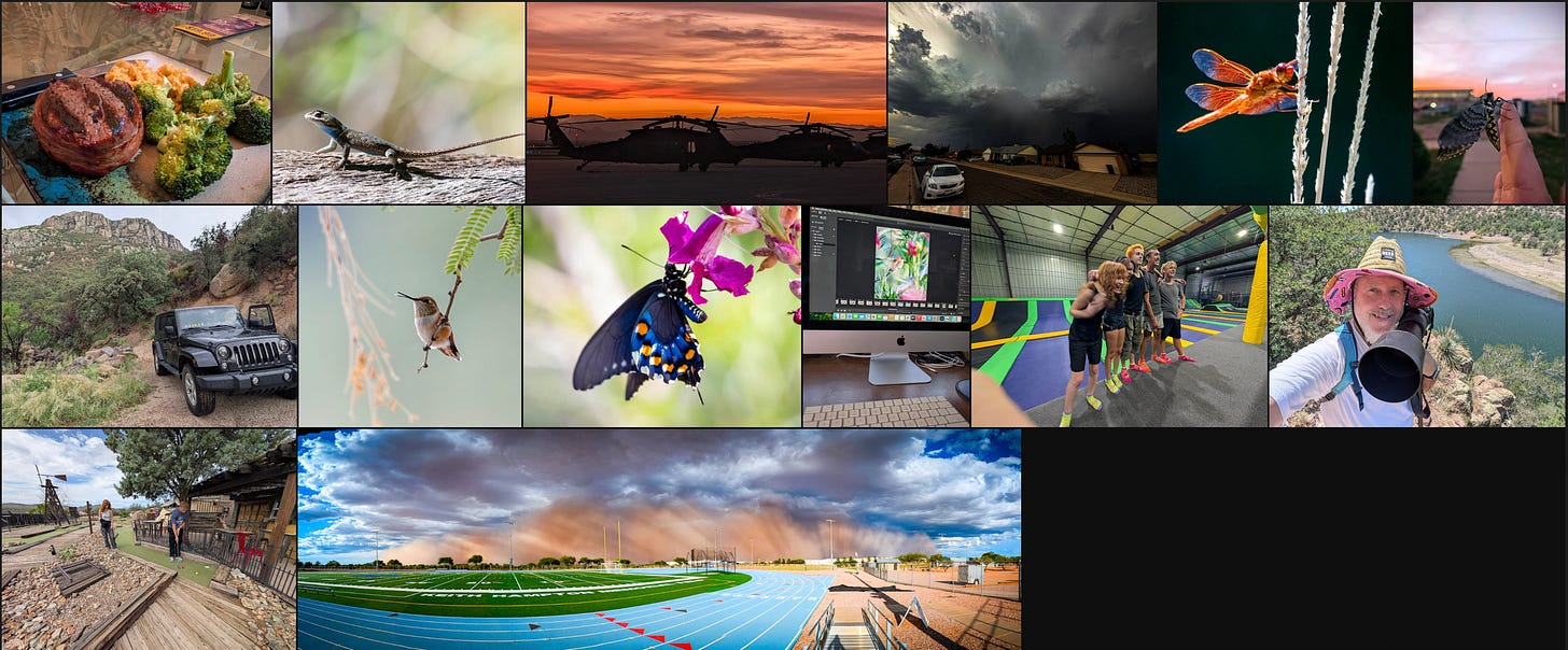 I have no idea why I grilled bacon-wrapped filet mignon, but it was good. August is peak thunderstorm month, and we somehow managed to get another wall of dust (after I’d told my two new guys at work about how that “never” happens here. We hit putt-putt golfing in Tombstone and a trampoline park in Tucson for my daughter’s birthday. I took a few cool nature pictures, including a Spinx Moth that gave me a sunrise pose on my finger before flying away.