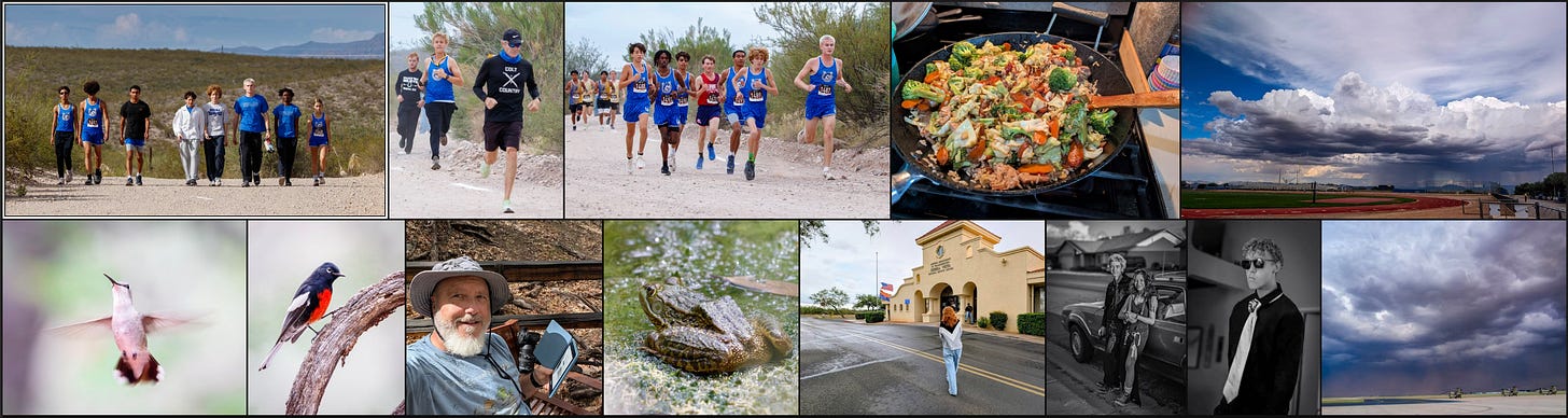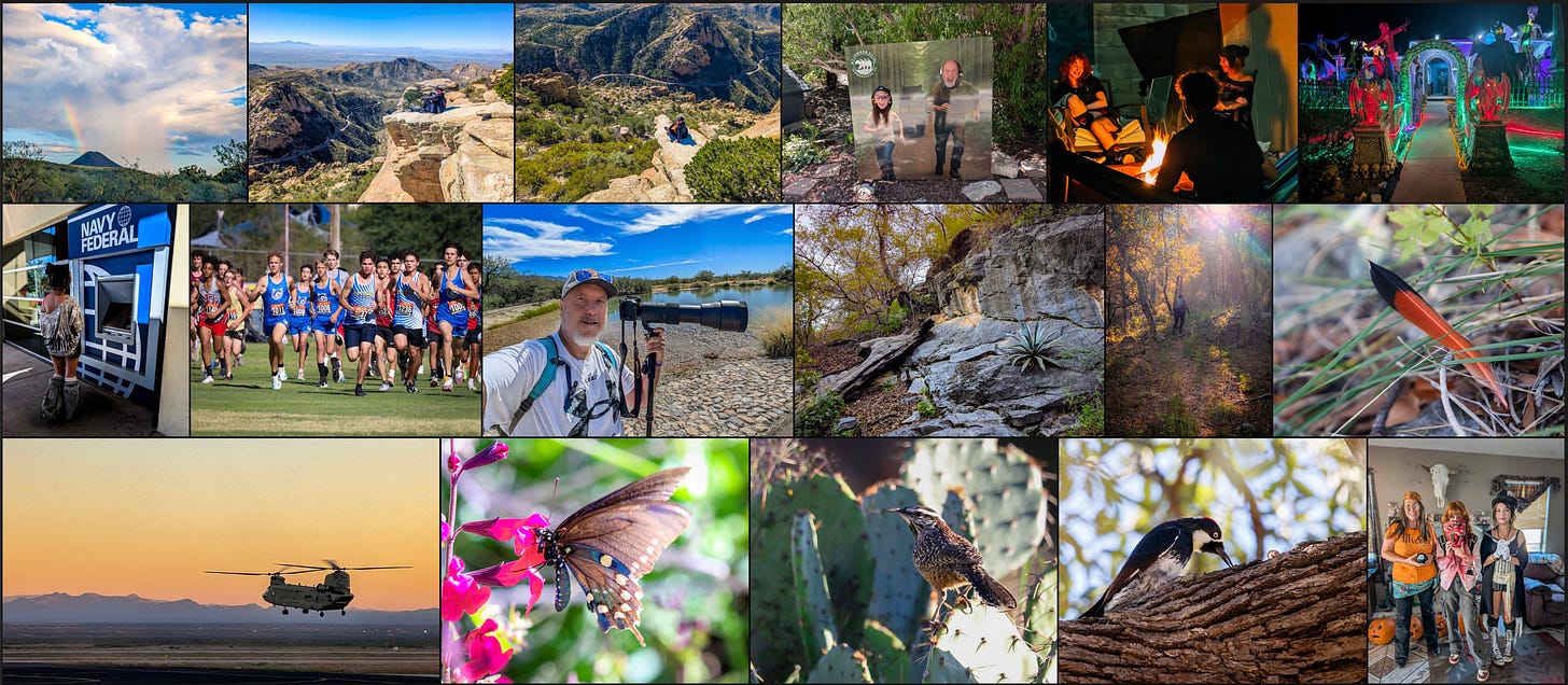 And unexpected rainbow, a trip up to the top of Mount Lemon, a “hard” hike in the Huachuca’s, bird pictures and Halloween light shows. My daughter opened a bank account to deposit the checks from her first job, and we had the first evening cool enough to light the fire pit in the back yard.