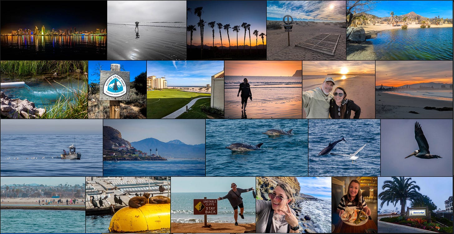 San Diego Sunsets, whale watching, and fresh crab legs for Kelly’s birthday. I’m sure we did a few other things in February, but this epic road trip dominated my pictures. We saw the Imperial Sand Dunes, Jacumba Hot Springs, and accidentally hiked part of the Pacific Crest Trail on the way there. We then stayed two nights at the Navy Lodge, right on the beach at Coronado Island.