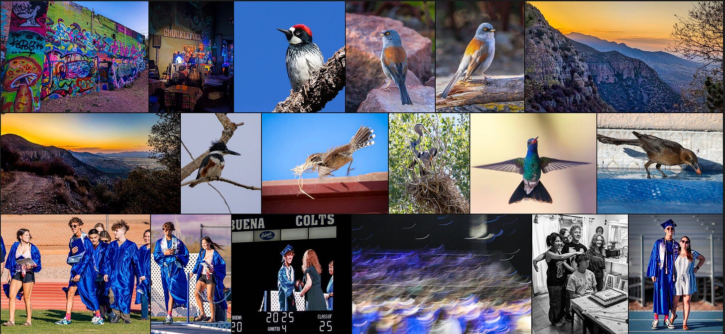 Kelly’s son Evan graduated from high school. We visited our favorite little mountain town of Bisbee to catch a comedy show. And on a drive up to the top of Carr Canyon, I got some of my favorite bird pictures of the year with that yellow-eyed Junco.