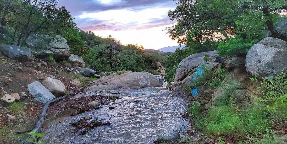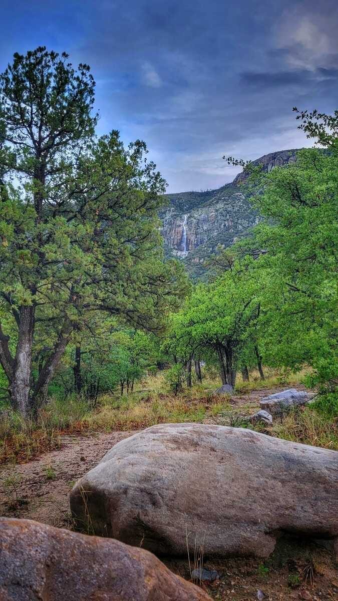 It rained pretty much all day on Tuesday here in Southeast Arizona. Initially this was more of an annoyance than anything, as I had to take my son to and from the orthodontist in Mexico. But on the way back, I began to realize how likely this made it that the water over Carr Falls would actually be running … my excitement grew by the minute ~
