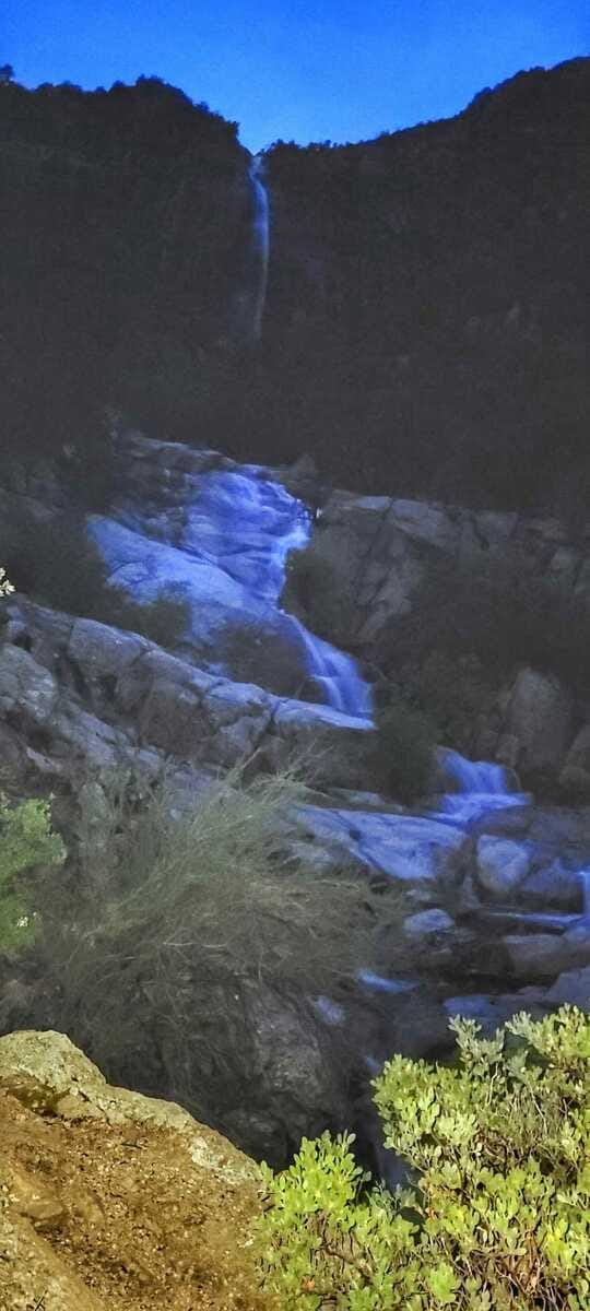 We stopped to get a couple more pictures of the falls on the way down. My camera used its flash, but also had a nice slow shutter effect that made the water appear nice and smooth, and kind of glowing.