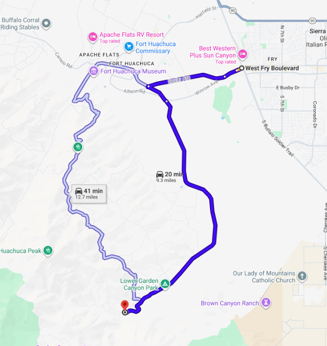 Once you’re on to Fort Huachuca, it’s a fairly easy drive over to Garden Canyon.