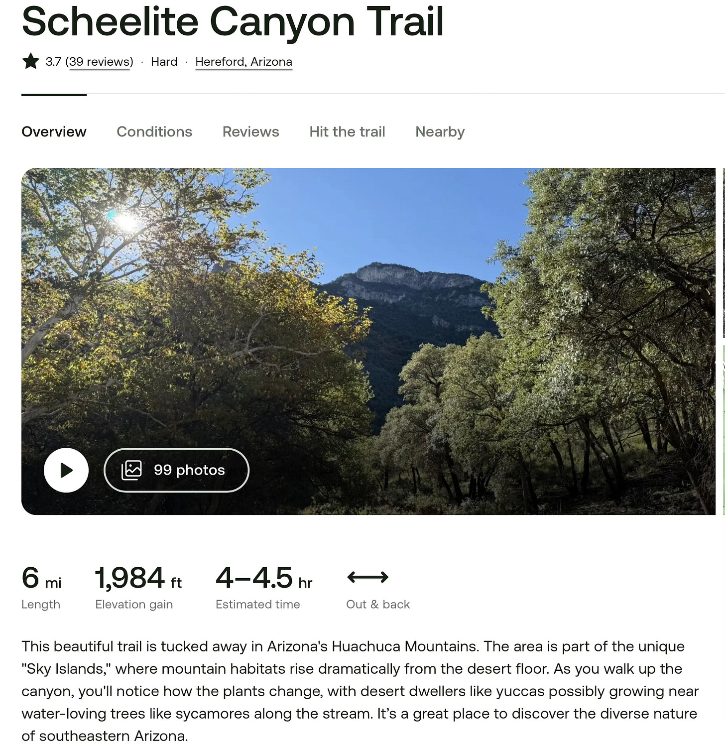 Scheelite Canyon is rated “hard” on AllTrails