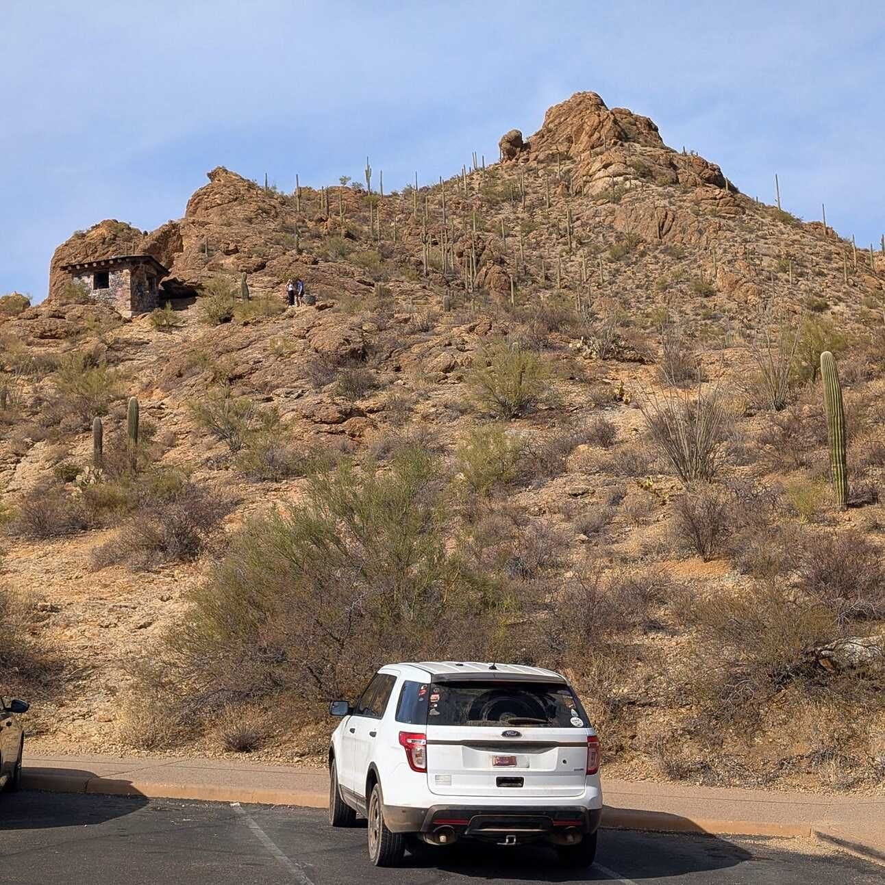 About halfway up Gates Pass Road, there is a turnoff on the left to a parking lot near the Gates Pass trail head. This was a nice little parking lot, with plenty of spaces and even a bathroom (be aware, it is one of the hole in the ground type toilets found at many trail heads).