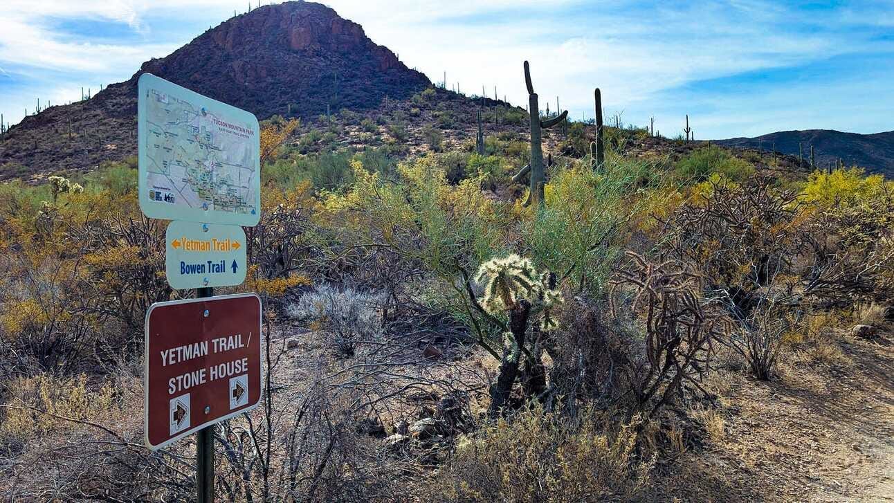 About a half mile in, there is a fork, and if you go to the left you can take the Bowen trail to the Starr Pass Resort, and it also connects to the hidden canyon trail (which Kelly and I had been on before when we stayed at Starr Pass this past summer). We had a brief moment of hesitation, as our destination was the Bowen Stone House (so it wasn’t a stretch to think the Bowen trail might be the way to get there). Fortunately, the signs are pretty informative, so we continued down the Yetman trail towards the stone house.