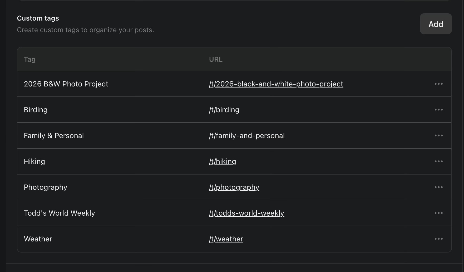 Then I had a conversation in Notes a month or two ago (I think it was with ) where it was pointed out that on Substack, “tags” actually function much more like what I would have thought of as categories on a blog.